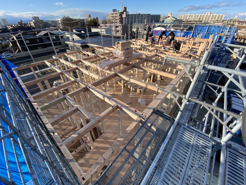 図面で見ていた住まいが、現地で立体的に感じられる段階となり、現場もより一層活気づいています。